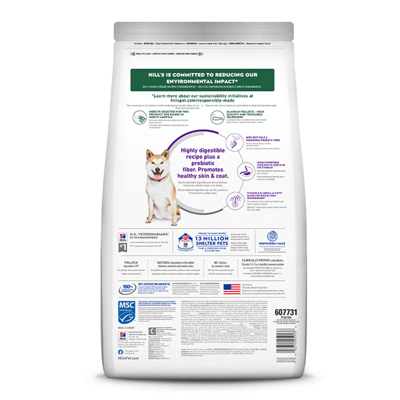 Farinha de Pollock, Farinha de Cevada, Farinha de Larva de Mosca Soldado Negra Desidratadas, Grão de Milho*, Grão de Sorgo, Amido de Milho*, Gordura de Frango, Proteína de Ervilha, Óleo de Soja Refinado**, Polpa Desidratada de Beterraba, Hidrolisado de Carne de Aves, Farelo Proteico de Milho - 60*, Ácido Lático, Cloreto de Potássio, Hidrolisado de Peixes, Cloreto de Colina, Grão de Linhaça, Vitaminas (Acetato de DL-Alfa-Tocoferol (E), Ácido Ascórbico Polifosfato (C), Niacina (B3), Mononitrato de Tiamina (B1), Retinol (A), D-Pantotenato de Cálcio (B5), Biotina (B7), Riboflavina (B2), Cianocobalamina (B12), Cloridrato de Piridoxina (B6), Ácido Fólico (B9), Colecalciferol (D3)), Cloreto de Sódio, Taurina, Concentrado de Tocoferóis, Fibra de Aveia, Extrato de Chá Verde, Extrato de Alecrim, Extrato de Menta, Hortelã (Mentha spp.), Minerais (Sulfato Ferroso, Óxido de Zinco, Sulfato de Cobre, Óxido de Manganês, Iodato de Cálcio, Selenito de Sódio), Betacaroteno, Maçã, Brócolis Desidratado, Cenoura, Extrato de Arando, Ervilha Moída Desidratada. Energia Metabolizável (EM): 3774 kcal/kg