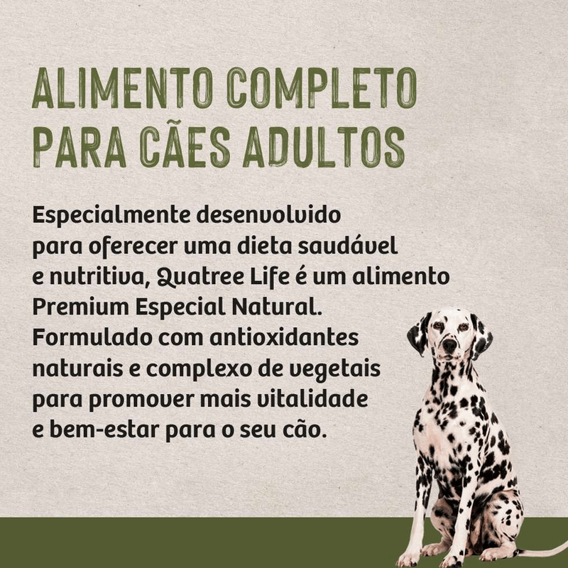 Farinha de vísceras de frango (mín. 25%), farinha de torresmo, arroz quebrado (mín. 20%), sorgo integral moído, farinha de peixes, gordura de aves, gordura suína, complexo de vegetais (mín. 3%) (farinha de batata-doce, polpa desidratada de beterraba, brócolis desidratado, cenoura desidratada), farelo de arroz, grão de linhaça, levedura de cervejaria inativada desidratada, zeólita, lignocelulose, cloreto de potássio, hexametafosfato de sódio (mín. 0,1%), sulfato de glicosamina, sulfato de condroitina, parede celular de levedura (fonte de beta-glucano 1,3-1,6), hidrolisado de fígado de aves e suíno, mananoligossacarídeo (MOS) (mín. 0,1%), extrato de yucca (mín. 0,02%), extrato de alecrim (mín. 0,001%), tocoferol (concentrado mín. 0,09%), ácido propiônico, acetato de retinol (vit. A), colecalciferol (vit. D3), ácido ascórbico (vit. C), acetato de DL-alfa-tocoferol (vit. E), mononitrato de tiamina (vit. B1), riboflavina (vit. B2), cloridrato de piridoxina (vit. B6), cianocobalamina (vit. B12), menadiona bissulfito de nicotinamida (vit. K3), biotina, cloreto de colina, niacina (vit. B3), ácido fólico (vit. B9), D-pantotenato de cálcio (vit. B5), sulfato de cobre monohidratado, sulfato de ferro, sulfato de zinco, sulfato de manganês, selenito de sódio, iodato de cálcio, minerais quelatados (proteinato de manganês, proteinato de selênio, proteinato de zinco).