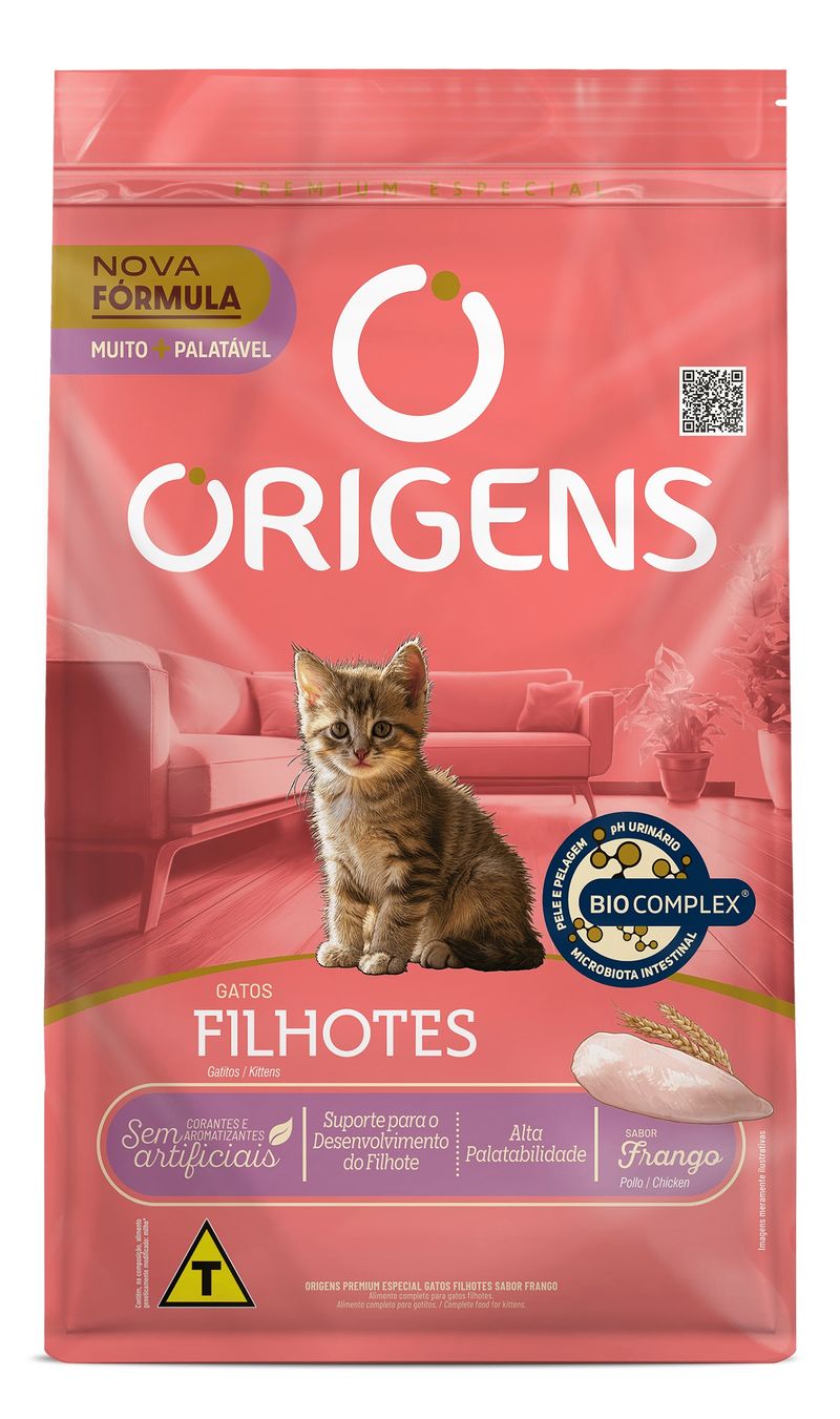 Farinha de vísceras de aves, milho moído*, farinha de peixes, proteína isolada de suíno (farinha de torresmo), farelo de glúten de milho-60*, polpa desidratada de beterraba, farelo de trigo, óleo de aves, óleo de salmão, hidrolisado de fígado de aves e miúdos de suínos, cloreto de sódio, linhaça, parede celular de levedura, inulina, extrato de yucca (0,03%), vitaminas (retinol, colecalciferol, acetato de DL-alfa-tocoferol, menadiona bissulfito de sódio, tiamina, riboflavina, piridoxina, cianocobalamina, cloreto de colina, ácido fólico, niacina, biotina, pantotenato de cálcio), minerais (sulfato de ferro, sulfato de cobre, monóxido de manganês, sulfato de zinco, iodato de cálcio, selenito de sódio, proteinato de zinco, levedura enriquecida com selênio), taurina, ácido fosfórico, metionina, ácido cítrico, ácido propiônico, BHA (Butilhidroxianisol) e BHT (Butilhidroxitolueno). Contém, na composição, alimento geneticamente modificado: milho*. Espécies doadoras de gene:Agrobacterium spp. *, Bacillus thuringiensis*, Streptomyces spp.*