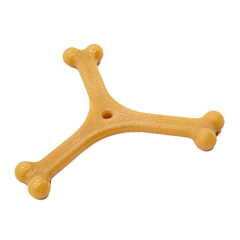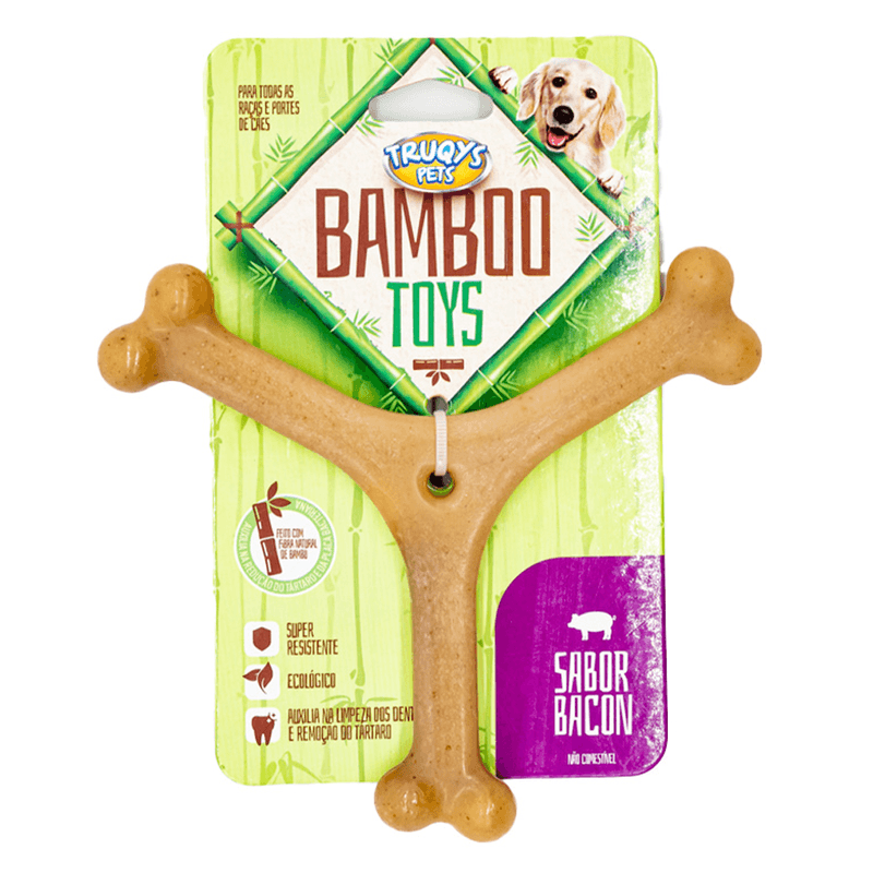 Mordedor + Higienizador Bucal da Truqys divertirá o seu pet e o ajudará a manter a saúde bucal saudável. Mais saúde e higiene: A linha Bambu Toys ajudarão na saúde bucal do seu pet massageando suas gengivas, evitando tártaros e placa bacterianas, além de fortalecer a sua mandíbula. Mais diversão: O seu pet ficará maluco com o aroma de bacon , a mastigação do brinquedo aliviará o stress e a ansiedade do dia a dia, reduzirá os incômodos nos dentes e evitará que o seu bichinho fique mordendo seus móveis, chinelos e sapatos. Ergonomia pensada no seu cachorro: A linha Bambu Toys foi desenvolvida com designs ergonômicos para o seu dog segurar o brinquedo com muita facilidade na boca ou com as patas. Mais resistência, durabilidade e sustentabilidade: Produzido a base de fibra de bambu (sustentável) com adição do nylon atóxico, torna o produto altamente resistente, flexível e duradouro. Diversas opções atrativas e saborosas: Esse lançamento conta com diversos tamanhos e formatos para agradar o seu cão. !Importante!: Ofereça sempre um mordedor maior do que a boca do seu pet para não correr o risco dele engolir ou se engasgar com o brinquedo.