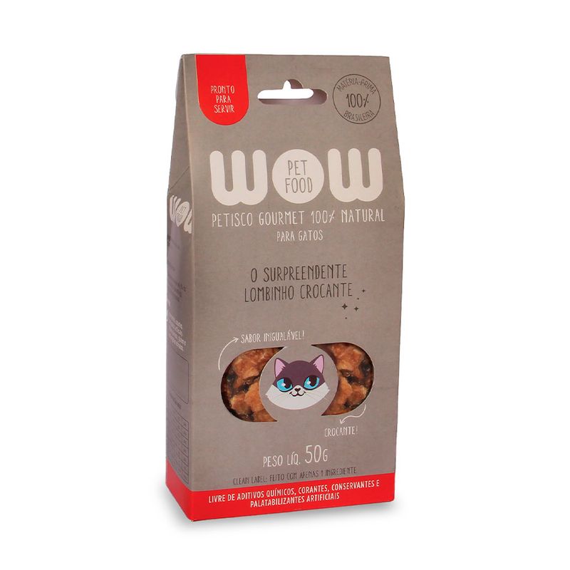 Petisco Wow Pet Food Gourmet “O Supreendente Lombinho Crocante” Para Gatos 50G Petisco premium com lombinho crocante. Perfeito para agrados saudáveis aos felinos.