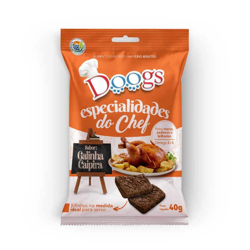 CachorrosOssos e PetiscosBiscoitosPetisco Doogs Chef Galinha Caipira 40G